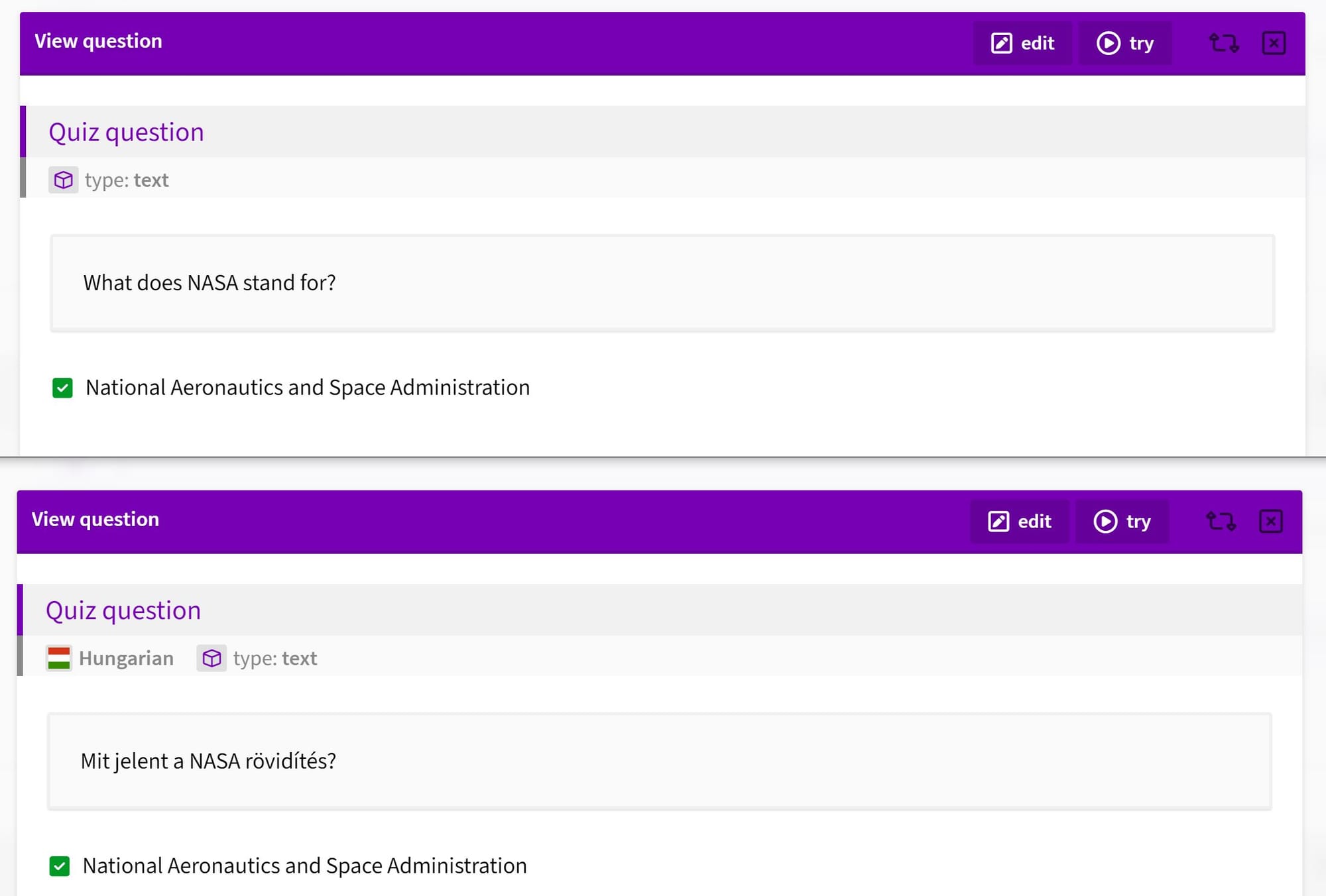 - Consistency: Maintains the integrity of your questions across all languages, ensuring all learners get the same quality of content.