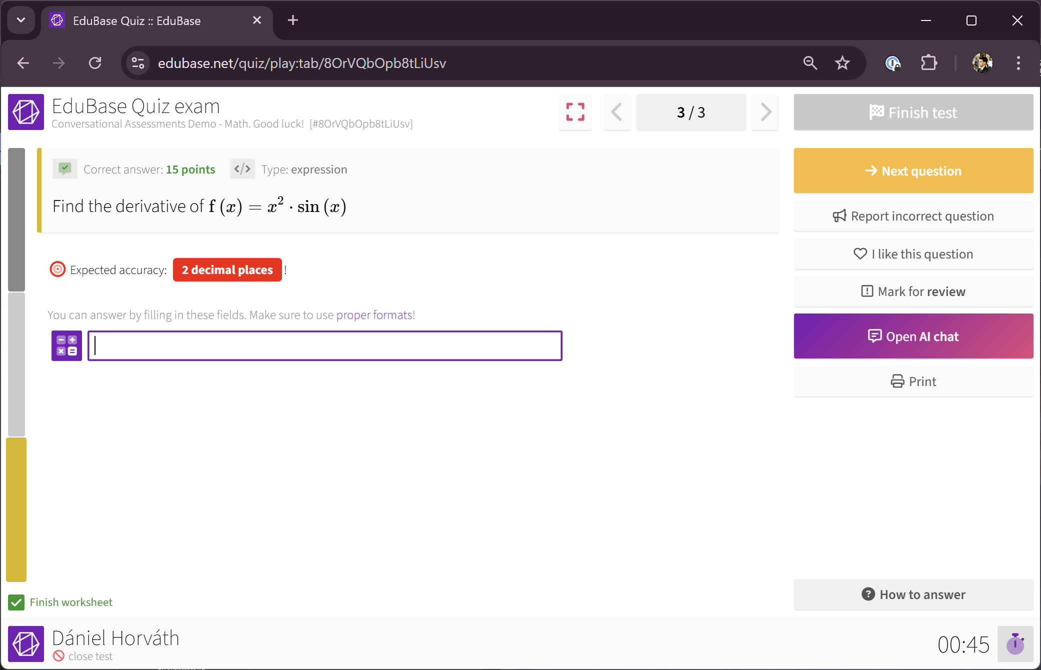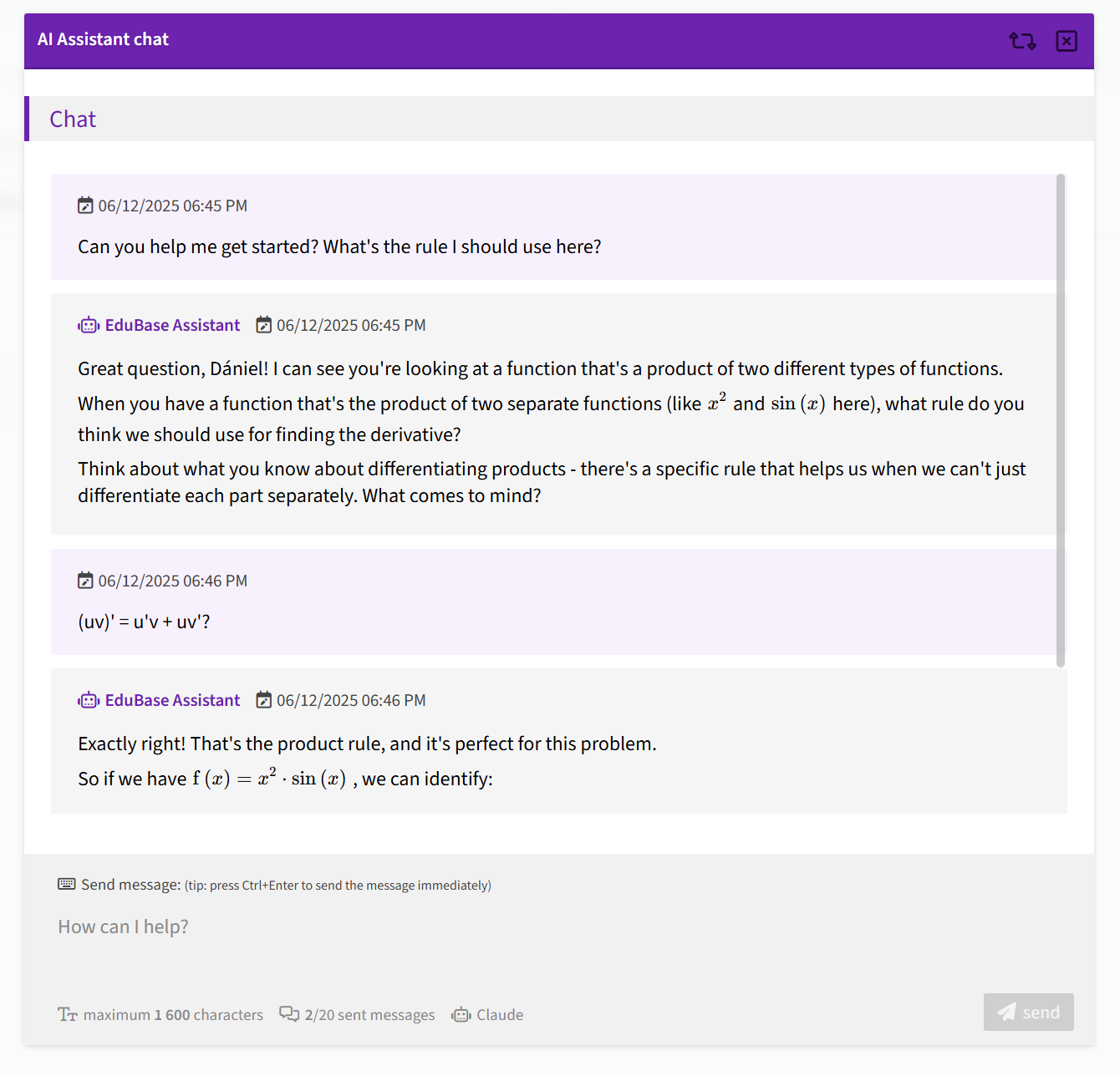 Forget sneaking a peek at Google, Wikipedia, or your group chat during a test. This is better than using standalone AI tools like ChatGPT, Claude, or Gemini. Why, you might ask? Because EduBase’s deep contextual awareness delivers meaningful, relevant support exactly when you need it, all while keeping the assessment’s integrity intact. Plus, it’s preparing students for a world where AI-augmented problem-solving is the norm, positioning EduBase as a leader in future-ready education.
