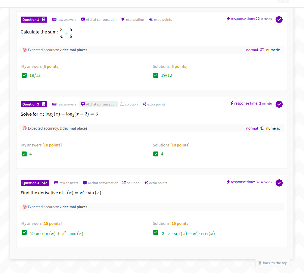 - Learn as you go: No more waiting days or weeks to understand your mistakes. Get real-time insights and develop better problem-solving strategies right in the quiz.