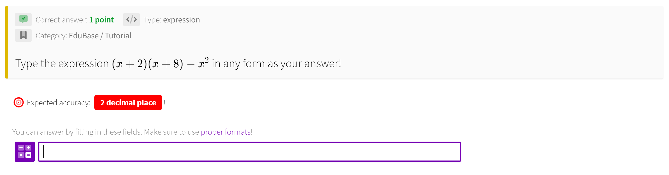 If you want to try creating your own expression tasks, do not hesitate! You can either contact us and have a live demonstration of this or just simply try it on our homepage, www.edubase.net!